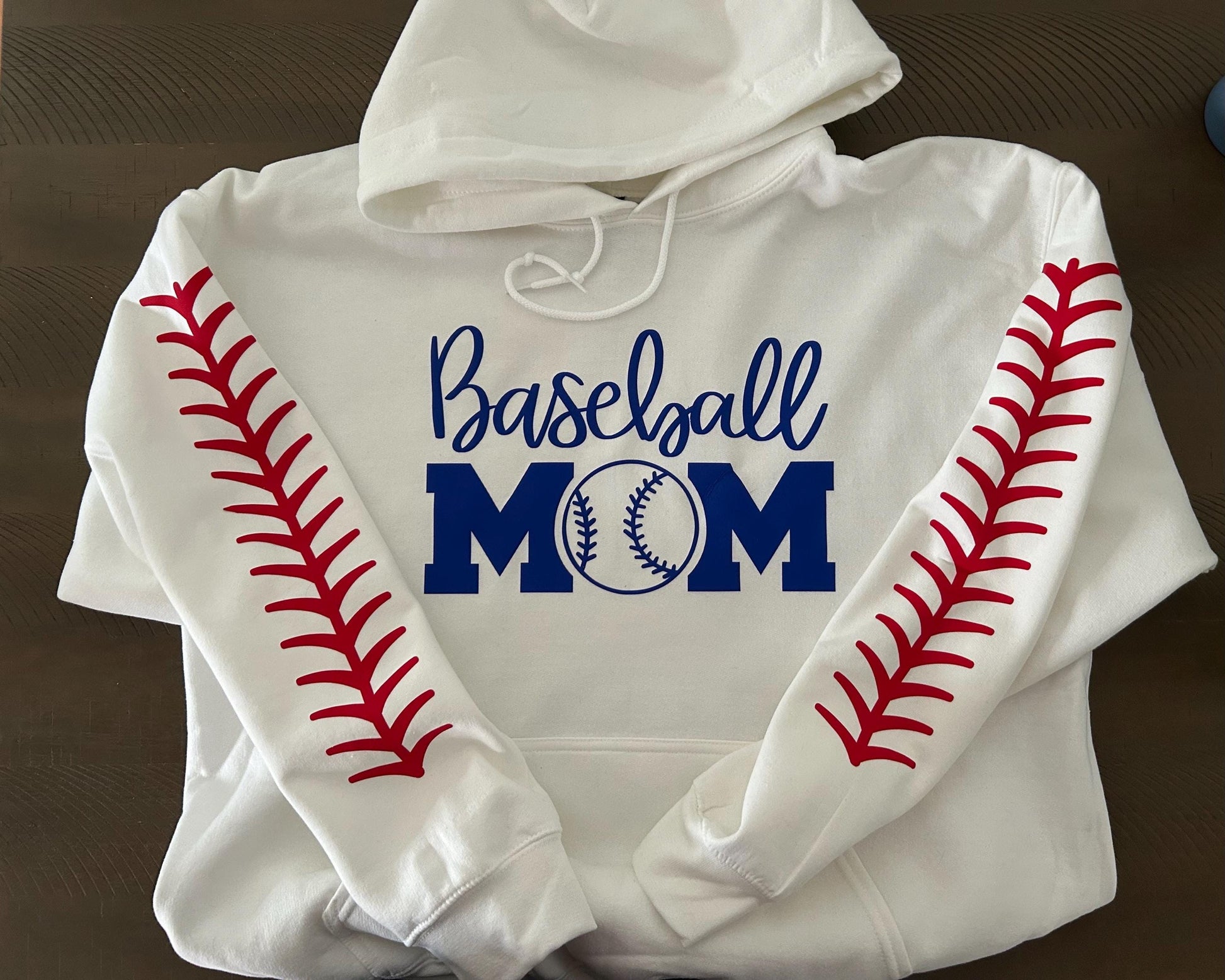 Blue writing Baseball Mom on front