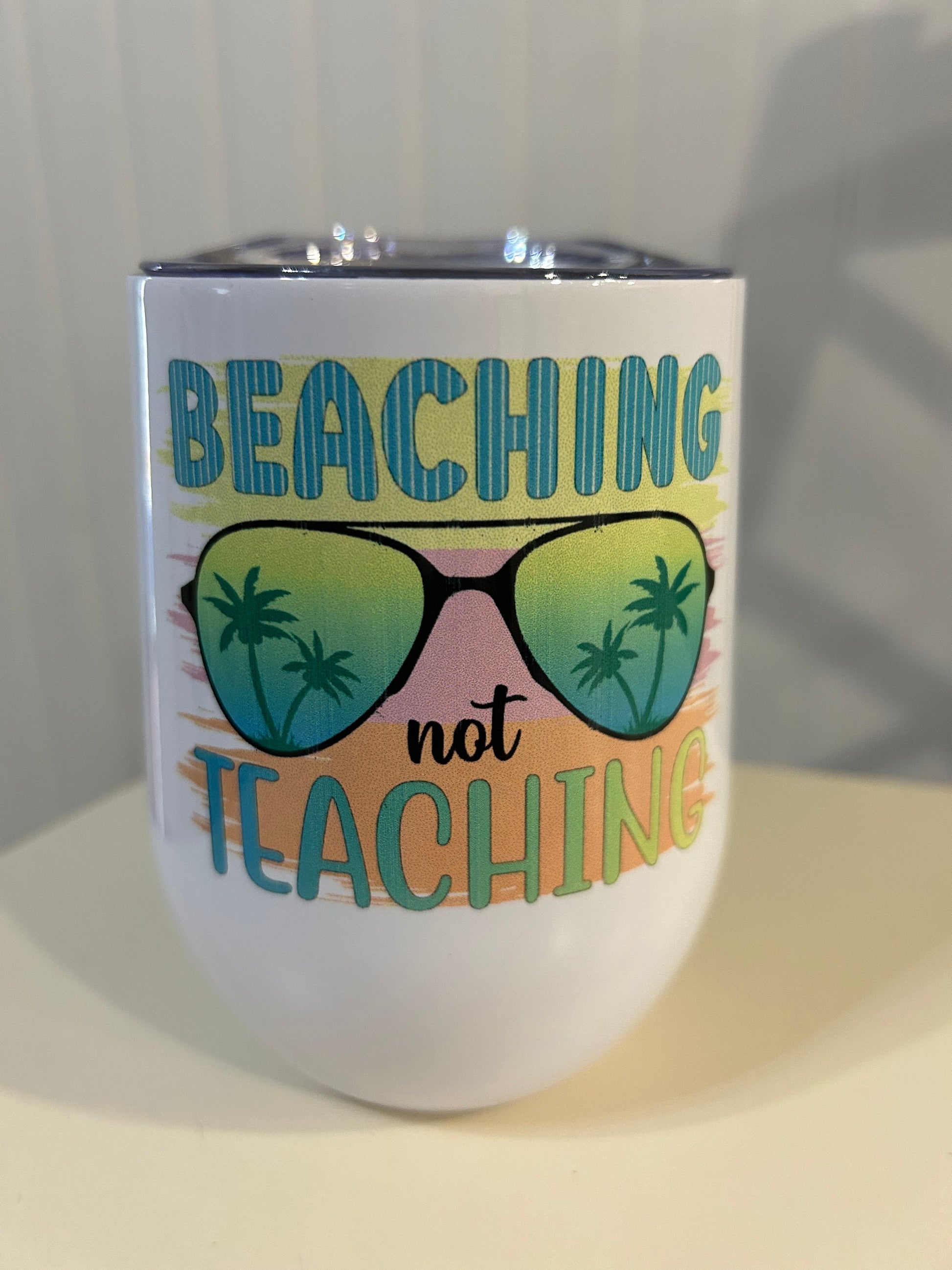 Beaching not Teaching Wine tumbler with clear plastic cover