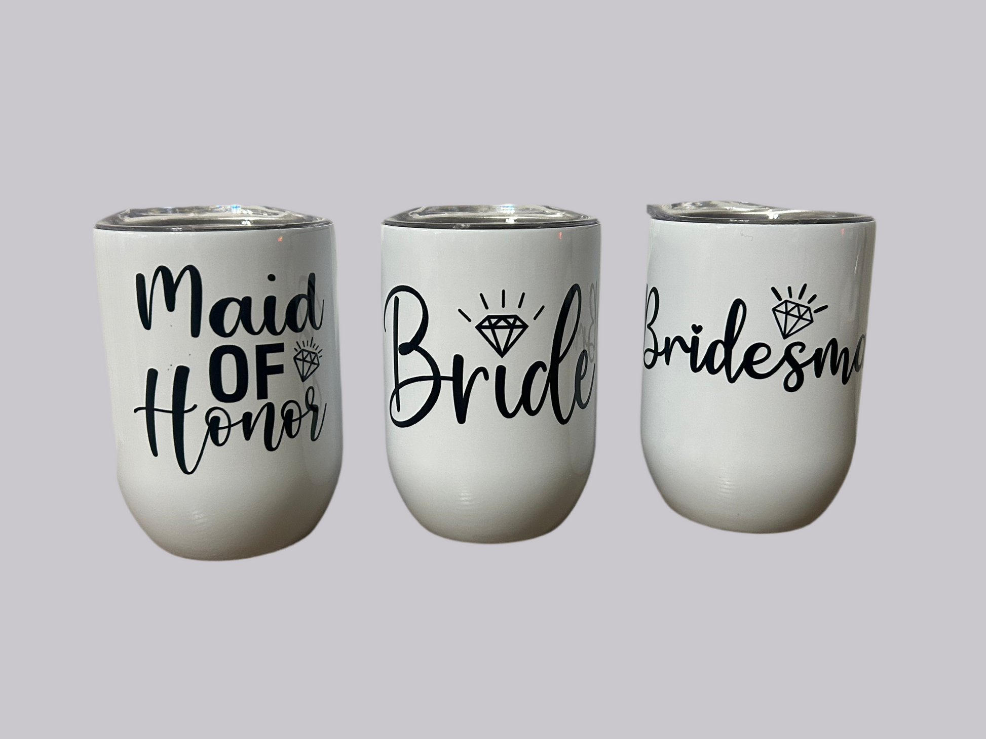 Bridal Party Wine tumbler with clear plastic cover