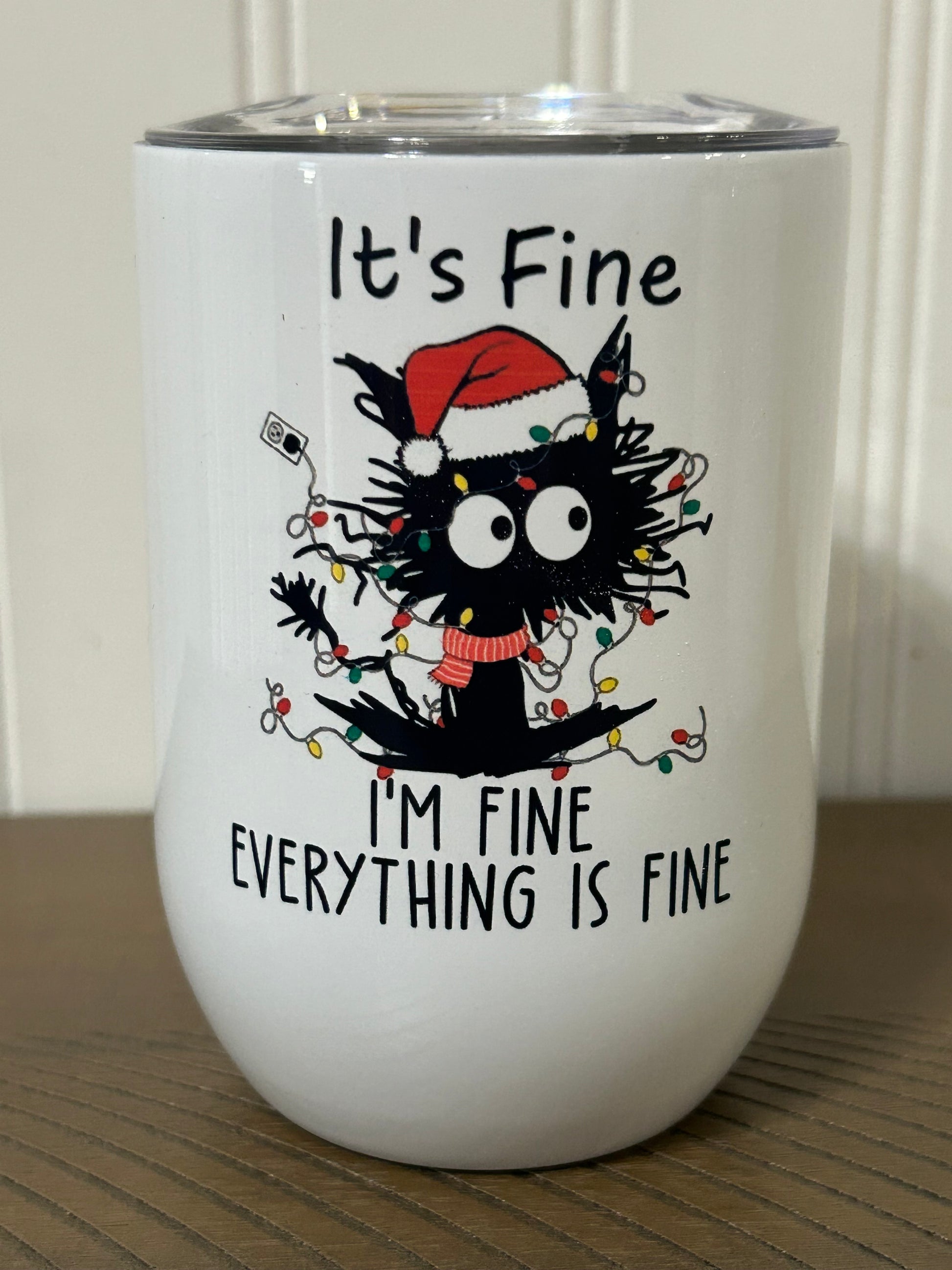 It’s Fine I’m Fine Everything is Fine Christmas Cat Wine Tumbler