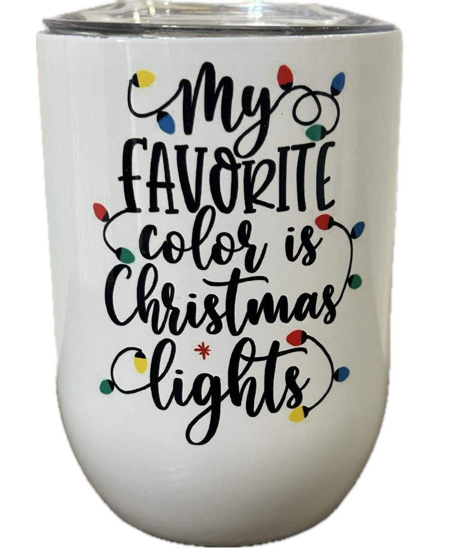 My Favorite Color is Christmas Lights Wine tumbler with clear plastic cover